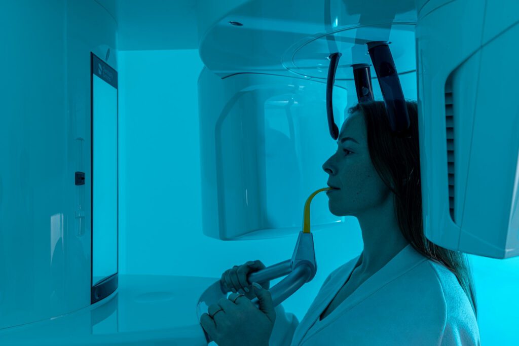 Für eine exakte Diagnostik und sichere Behandlungsplanung nutzen wir digitales Röntgen sowie die Digitale Volumentomographie (DVT). Die dreidimensionale Bildgebung ermöglicht eine detaillierte Darstellung von Knochen, Nervenverläufen und anatomischen Strukturen. Dies ist besonders wichtig bei Implantationen, Knochenaufbau, Wurzelkanalbehandlungen und chirurgischen Eingriffen.
